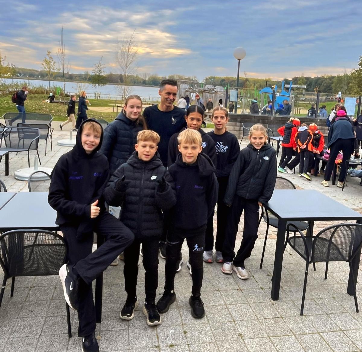 De miniemen meisjes “Anna Giulia Schafranski – Lina Withofs – Aliyah Froidmont” waren het eerst aan de beurt. Zij zorgden bijna voor de verrassing. Ploegkapitein Anna gaf het goede voorbeeld en sloeg een mooie kloof op een 2de plaats. Dan zagen we van Lina een sterk staaltje lopen. Eerstejaars Aliyah Froidmont hield verrassend stand tot in de eindfase waar ze nipt tekort kwam voor het podium. 4de plaats op 73 ploegen. Wat hadden we ze het zo gegund!! De miniemen jongens “Olle Verhoeven-Leandro Jakelj-Haile Opsteijn” werden eigenlijk tot de favorieten voor het podium gerekend. Kwamen in de eindfase iets te kort, 5de plaats op 77 ploegen. Ze waren onder de indruk van het sterke deelnemersveld. De seniores damesploeg “Heleen Segers-Lotte Tiesters-Fien Peusens” deden het uitstekend. Eerste jaars Heleen weerde zich in dit sterke deelnemersveld. Oriëntatieloopster Lotte, sterk, raapte een aantal loopsters op  en Fien Peusens pakte op de langste afstand, 4,5km, een aantal loopsters terug met een mooie 29ste plaats op 64 deelnemers. Dan waren de cadetten meisjesploeg “Kyana Froidmont-Ana Julia Santos Carvalho-Esther Thijs” aan de beurt. Kyana en Esther waren er voor het eerst bij en werden als het ware voor de leeuwen gegooid. Ze deden dit uitstekend en neem daarbij nog een sterke Anna Julia bij dan was de 31ste plaats op 63 ploegen meer dan goed. De juniores mannenploeg “Louis Brasseur-Victor Chilah-Yordan Beusen” kregen een beresterk deelnemersveld voorgeschoteld. Ze verdedigden zich met hand en tand. Hier bevestigde Victor wel zijn sterk zomerseizoen. Mooie 23ste plaats op 53 deelnemers.