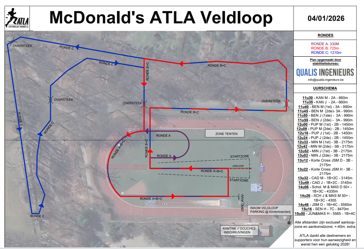 Atleten VERPLICHT aanmelden in ATLA-clubhuis.